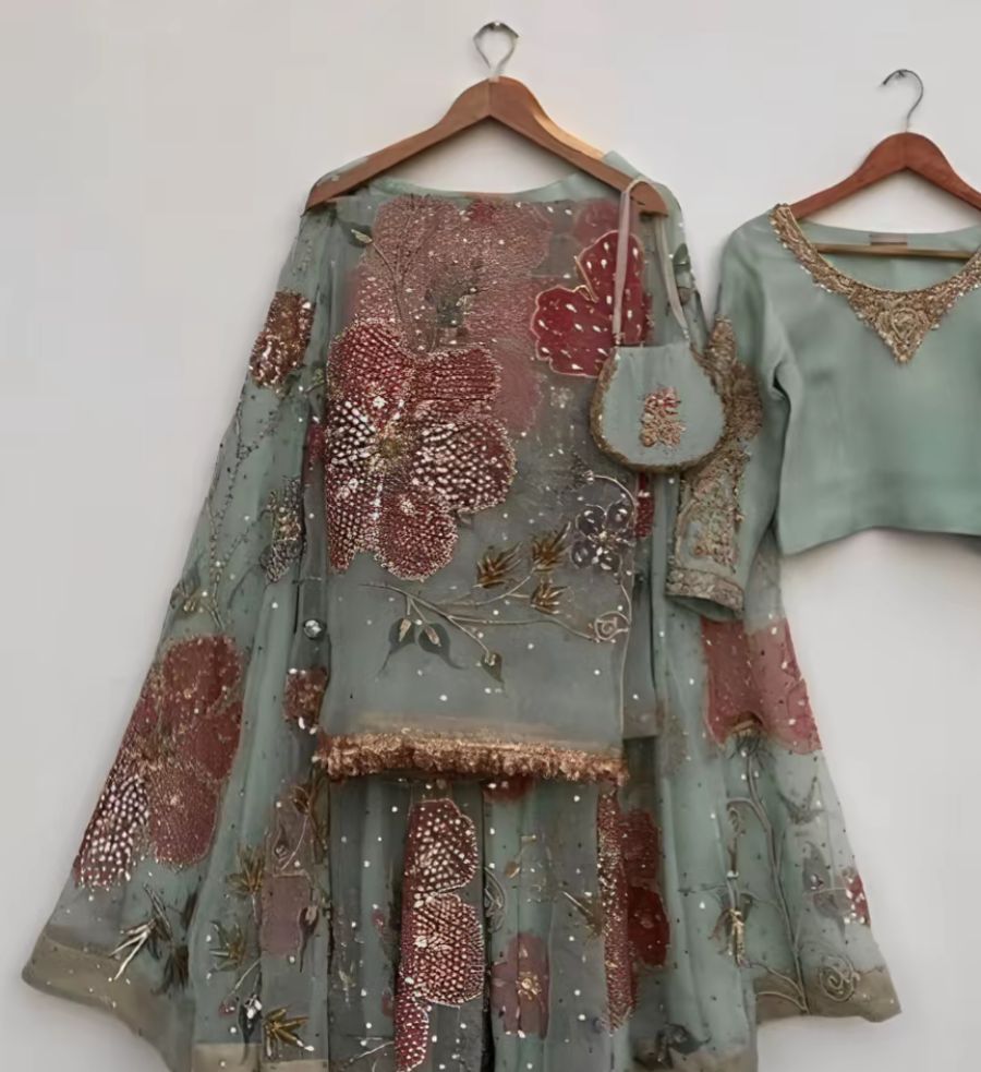 Hand embellish organza customize lehnga